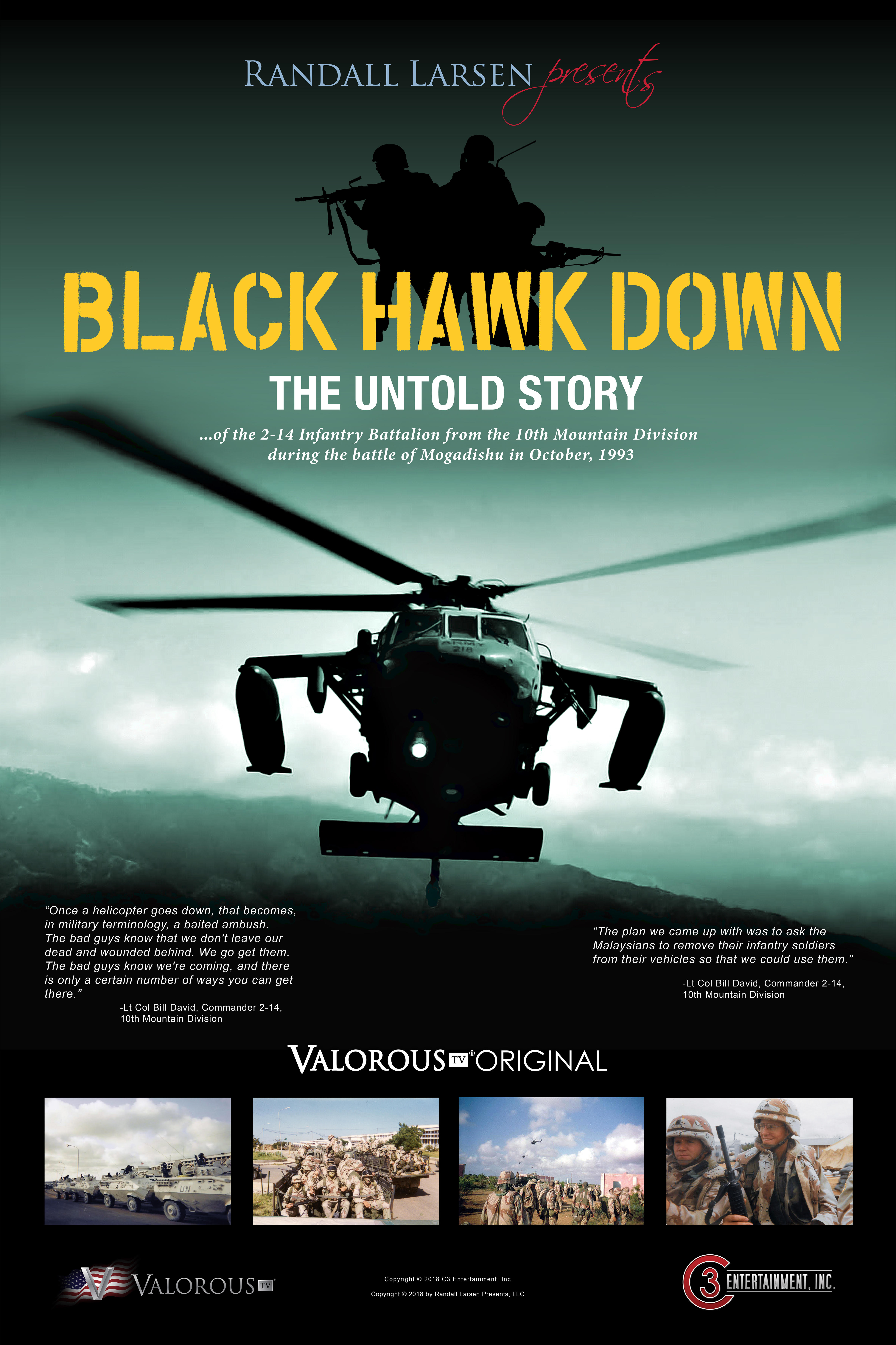 Black Hawk Down: The Untold Story is a documentary film on the heroic efforts of the soldiers from the 2nd Battalion 14th Infantry Regiment, 10th Mountain Division (2-14). These men demonstrated extraordinary courage, skill, and discipline as they fought their way into a “baited ambush” to rescue the special operations forces pinned down at the crash site of Super Six-One while also attempting a rescue at the crash site of Super Six-Four. Two soldiers from the 2-14 were killed and eighteen wounded in what many have described as the most ferocious urban combat since the Battle for Huế during the Tet Offensive in 1968.